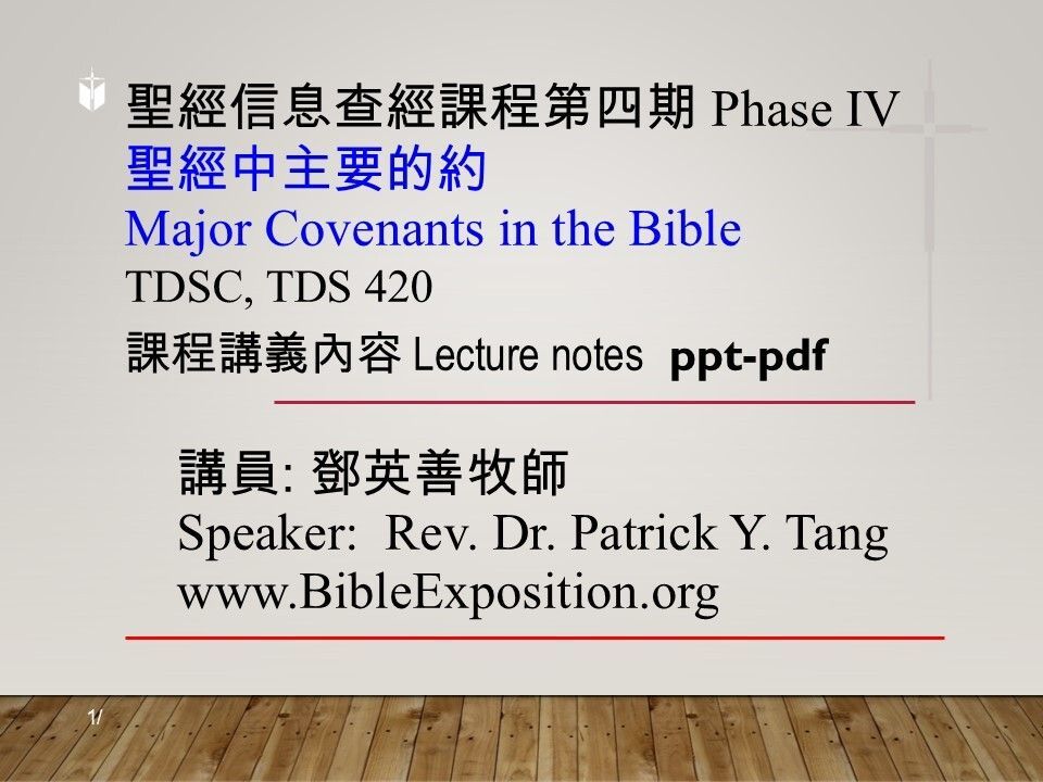 第四期 Phase IV 420 聖經中主要的約 Major Covenants in the Bible
